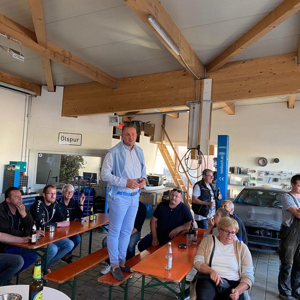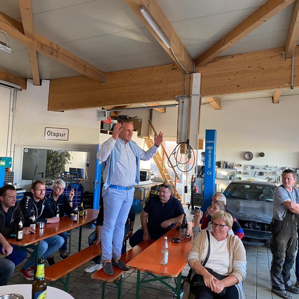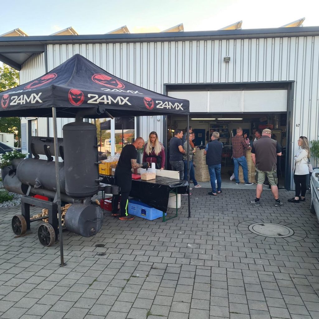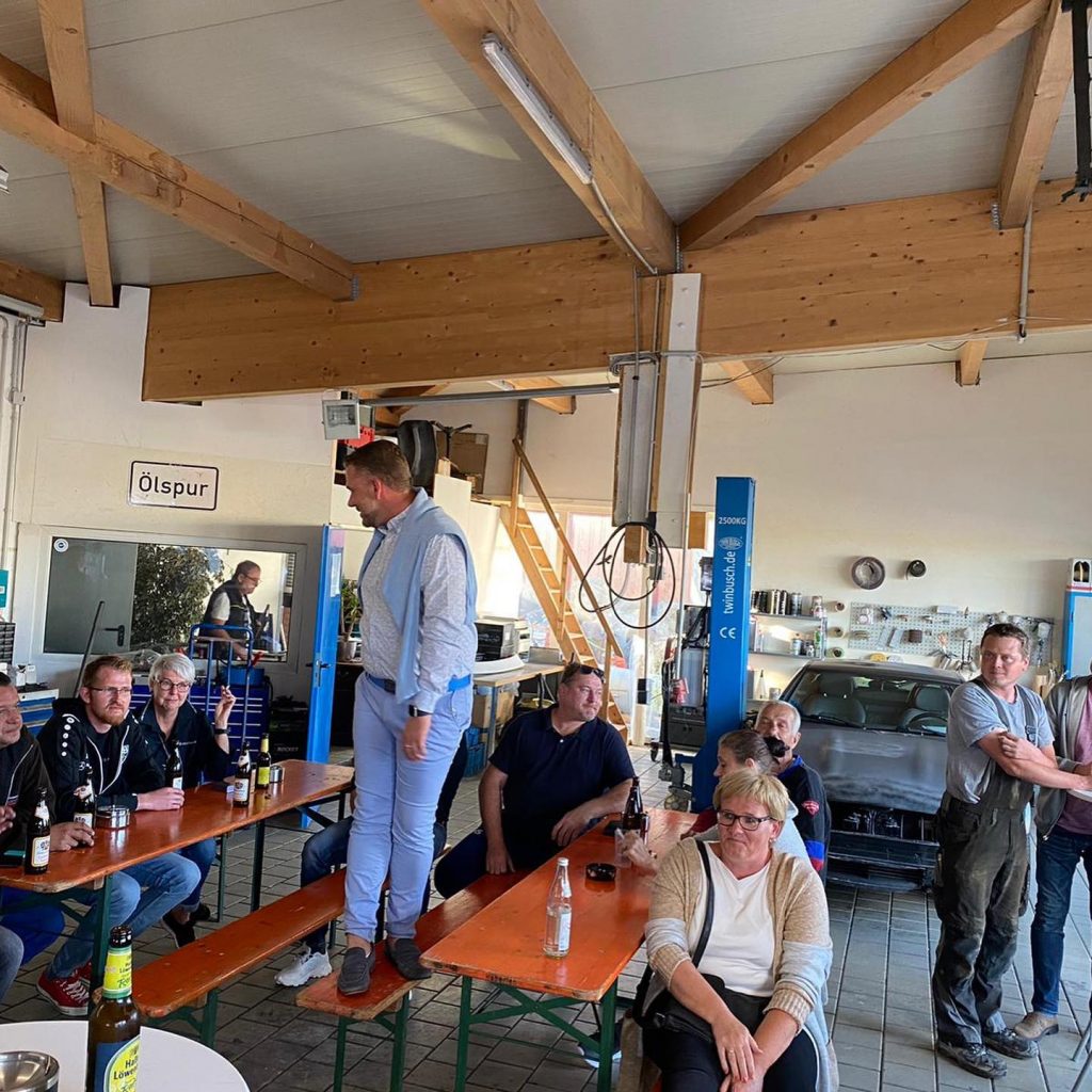 Mit rund 40 Personen aus 24 unterschiedlichen Unternehmen war dieser Abend ein voller Erfolg! In einer kurzen persönlichen Ansprache habe ich nochmals auf die Wichtigkeit eines solchen Interessenverbandes hingewiesen. „Gerade jetzt, wo die Gemeinde in kürze einen neuen Bürgermeister bekommen wird ist das vertreten gemeinschaftlicher Interessen von großer Bedeutung.“ Aber auch die zahlreichen gesellschaftlichen Angebote, die der ehemalige Gewerbeverein übernommen hatte, fehlen merklich in der Gemeinde. Diese Worte haben nochmal angeregt sich auch über neue Ideen und einer eventuellen Fortführung auszutauschen. Besonderen Dank möchte ich auch im Namen aller Teilnehmer*innen an Katrin und Jürgen Schneider (JKS Classic Cars) für die Organisation, die Räumlichkeiten und die Versorgung mit Getränke aussprechen. Für einen Hochgenuss aus dem Smoker mit seinem Original American Barbecue bedanke ich mich bei Nicky Haase von Smokin‘ Nicky