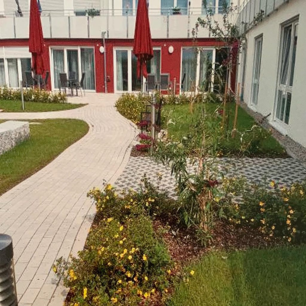Im gesamten Erdgeschoss wird das Pflegestift Obersontheim mit 30 Einzelzimmern / Betreuungsplätzen auf zwei Wohngruppen betrieben. Weiterhin befindet sich auch vor Ort eine Küche, welche die angelieferten Speisen den Bewohner*innen in ansprechender Form serviert. Besonders stolz ist man auf den innenliegenden Außenbereich, welcher für unterschiedliche Freizeitaktivitäten hergerichtet ist.